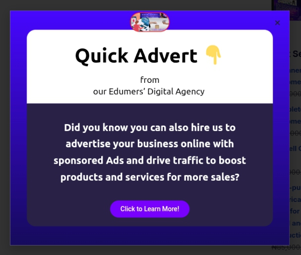 Did you know you can also hire us to advertise your business online with sponsored Ads and drive traffic to boost products and services for more sales?